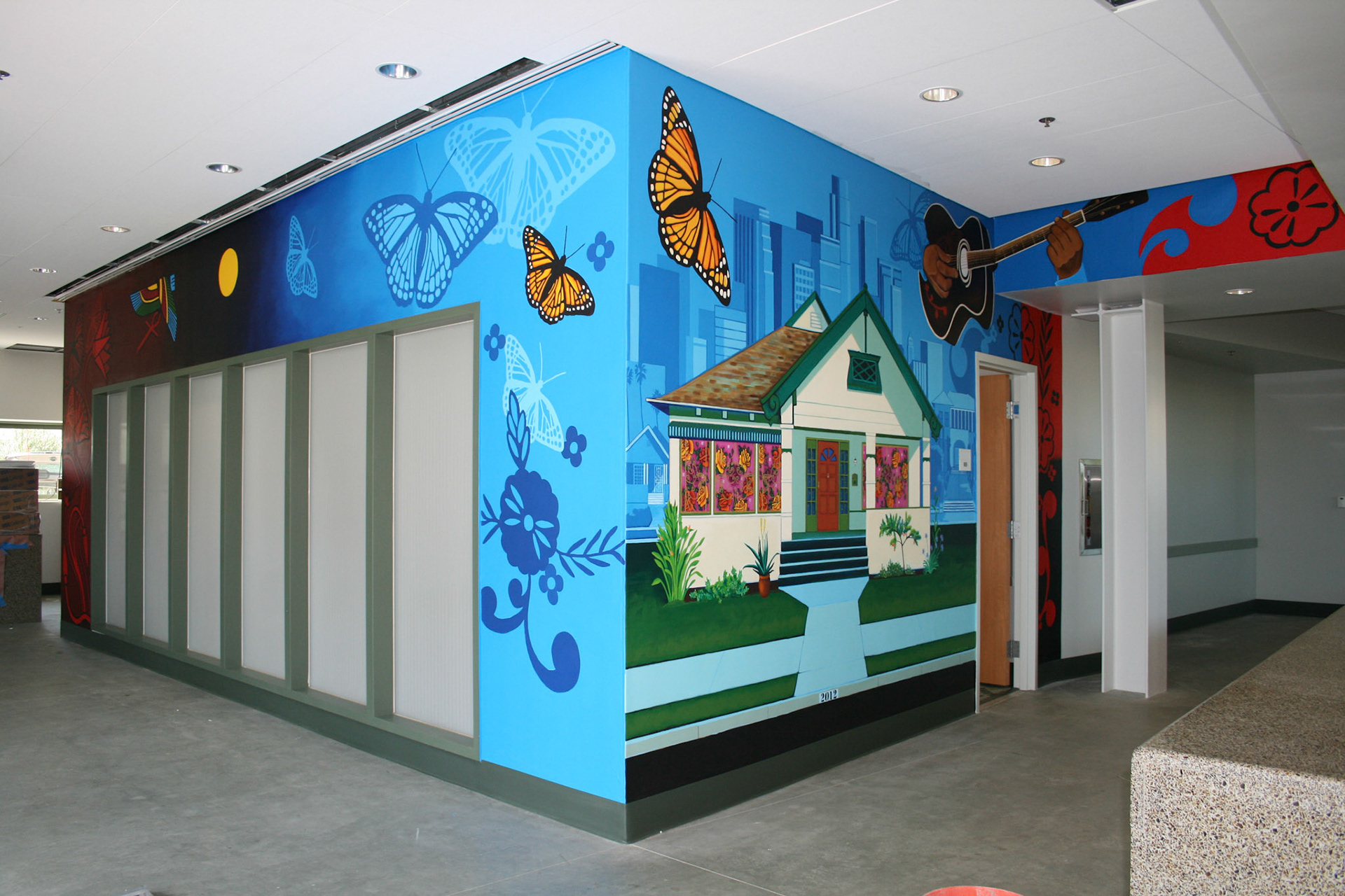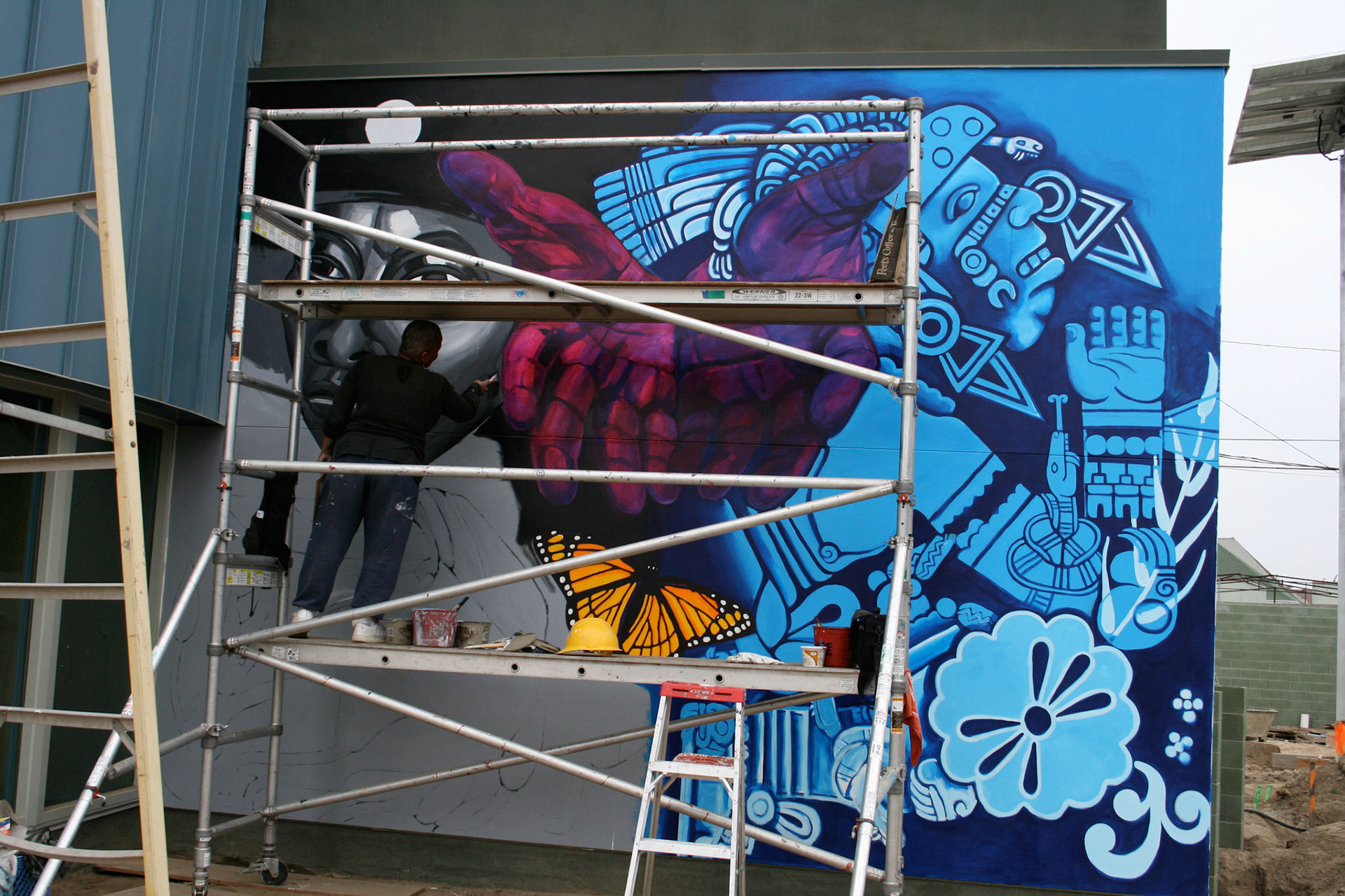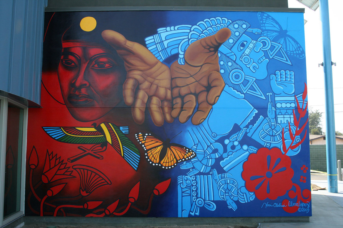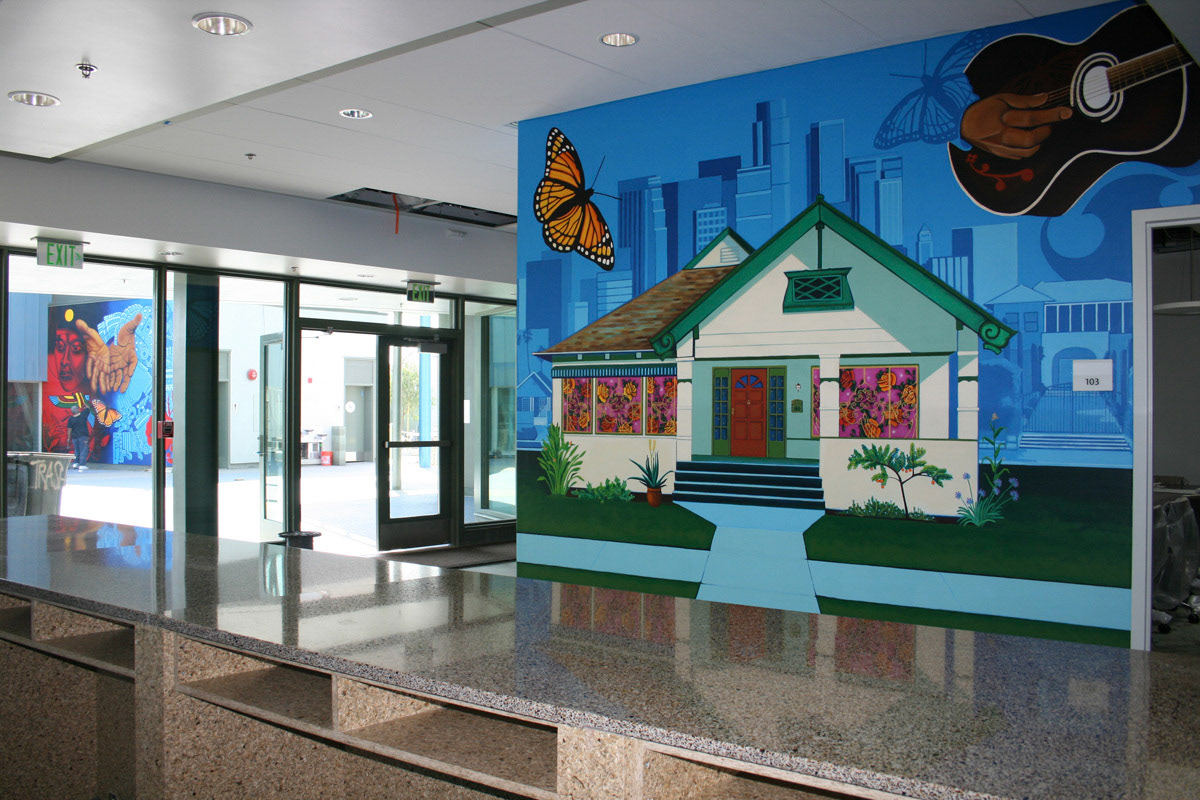 Mural projects created in collaboration with Noni Olabisi, funded by the L.A. Cultural Affairs Department, and permanently installed at the Angeles Mesa Public Library, the Central Avenue Constituent Services Center and the Gilbert Lindsay Recreation Center. All in South Central Los Angeles.