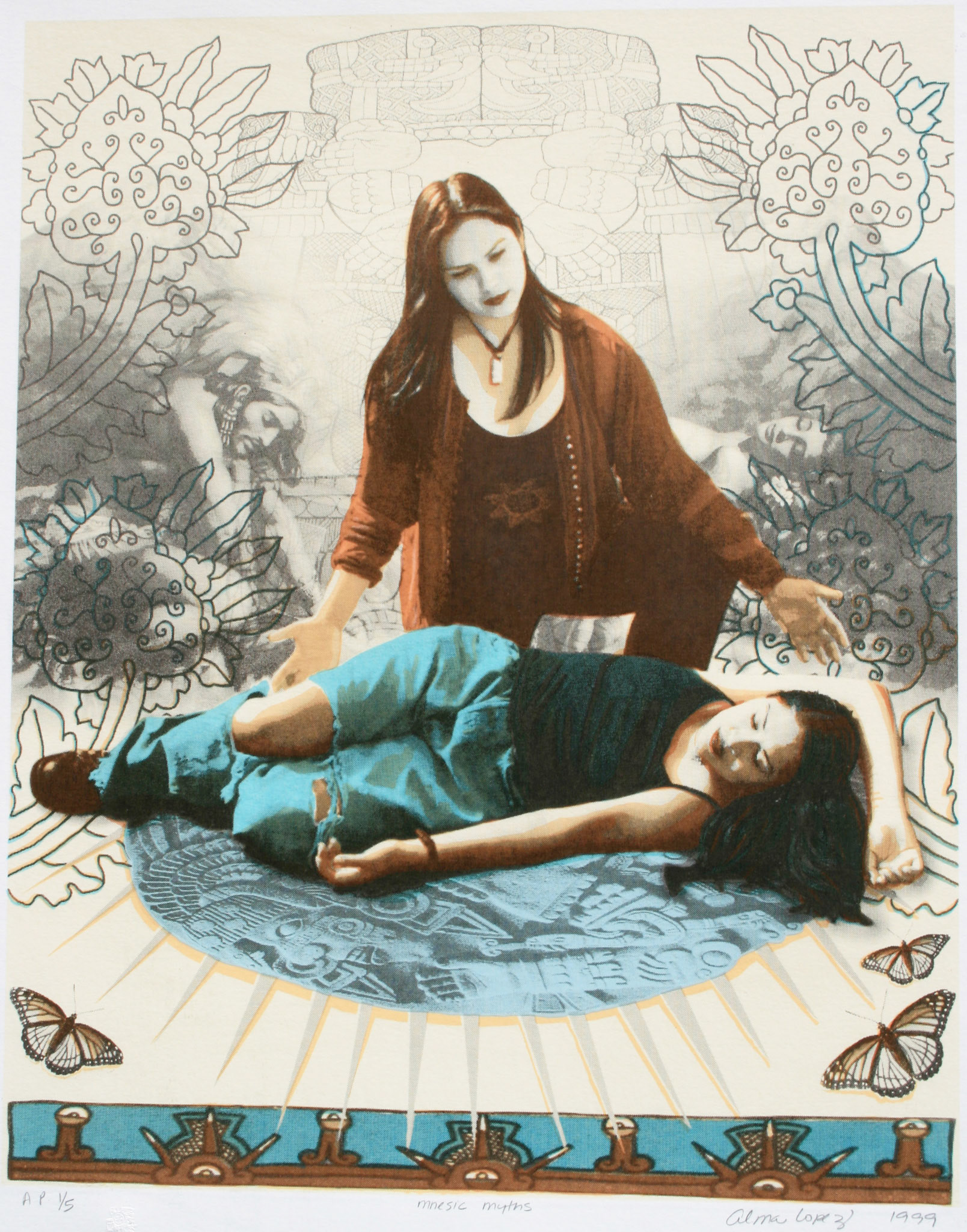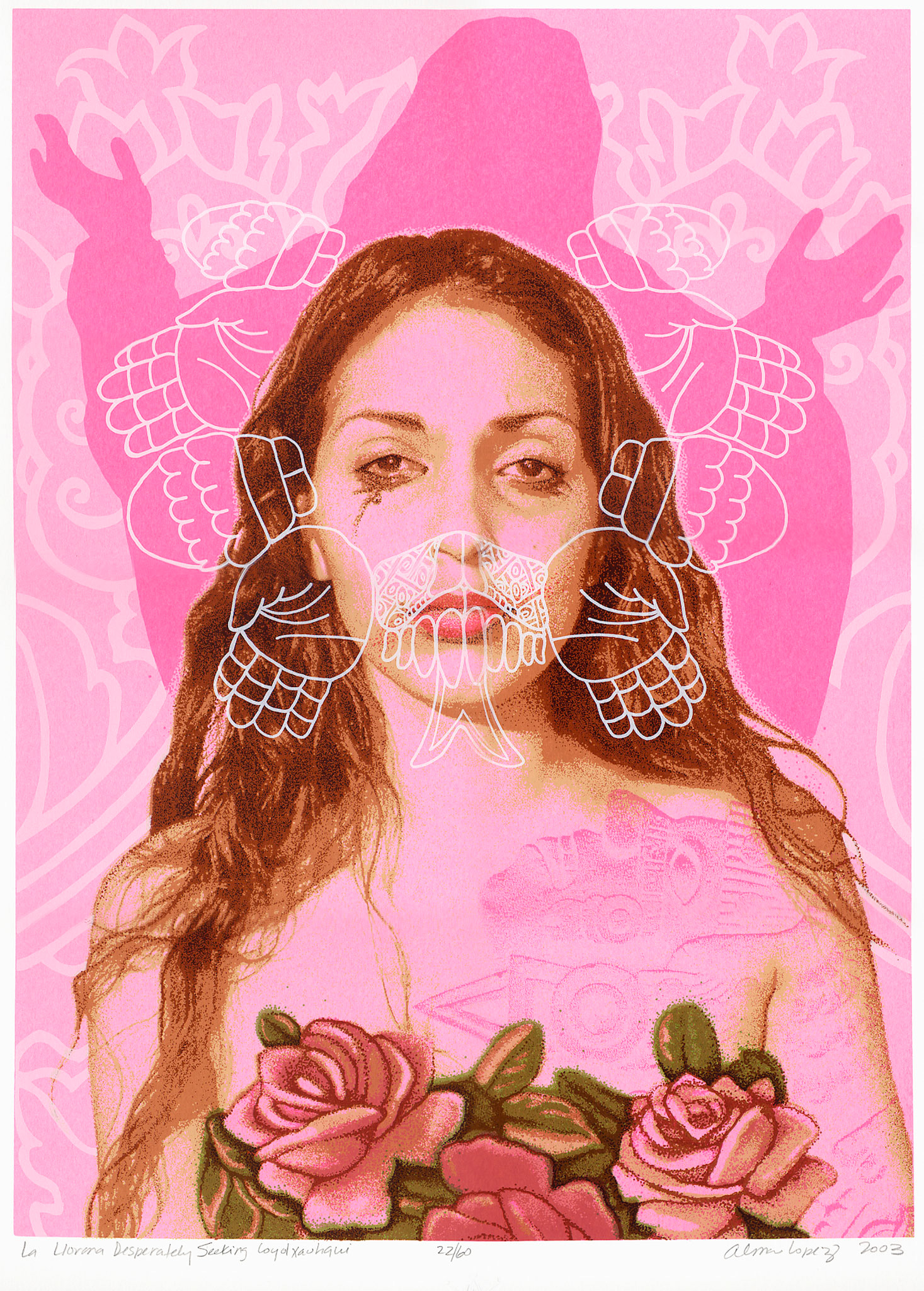 Silkscreen prints created at Self Help Graphics in East Los Angeles or Coronado Studios in Austin, Texas.